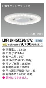AIの指示に従ってネットの楽天で東芝ライテックのLDF13NHGXC20/17/2を購入。1週間ぐらいで到着しました。形は幾分違う物でしたがちゃんと設置できました。